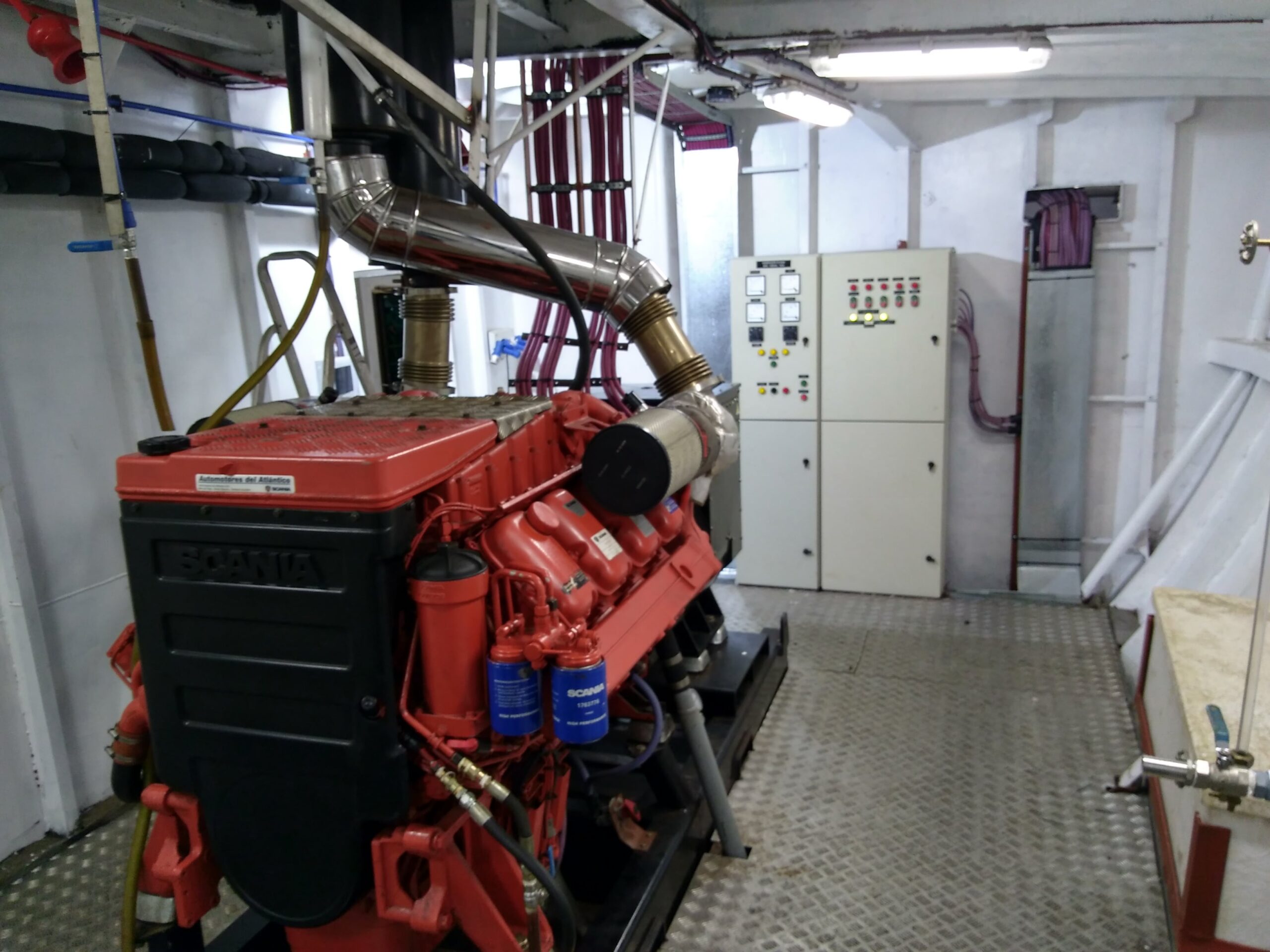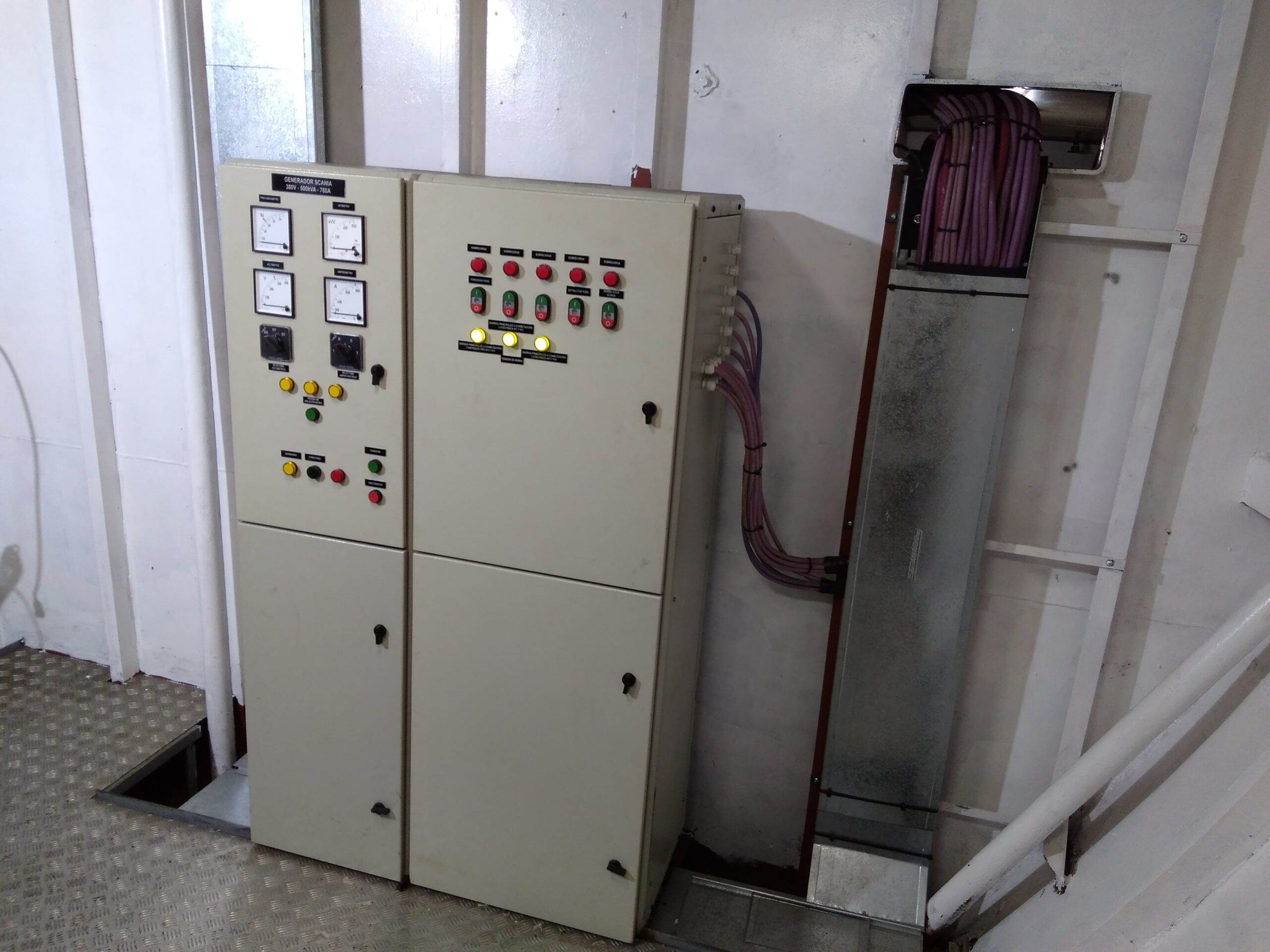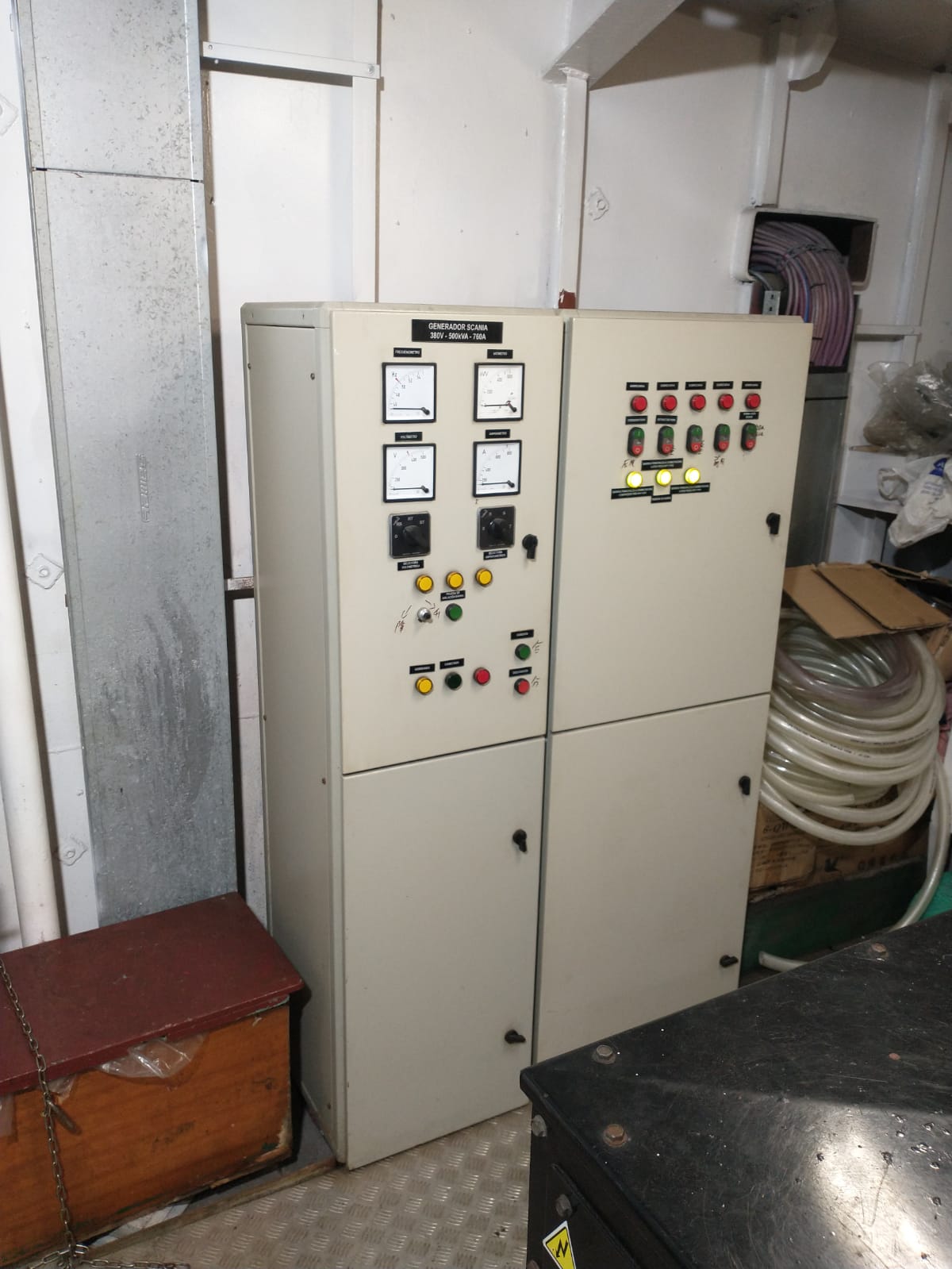 Para el conjunto de Motor-Generador de 550kVA, instalado en la popa del buque, se realizó el diseño y montaje del Tablero de distribución para poder alivianar a los generadores originales al conectar por medio de conmutadoras los Compresores de Frío 1 y 2 ó los Circuitos de luces de pesca 1, 2, 3 y 4.